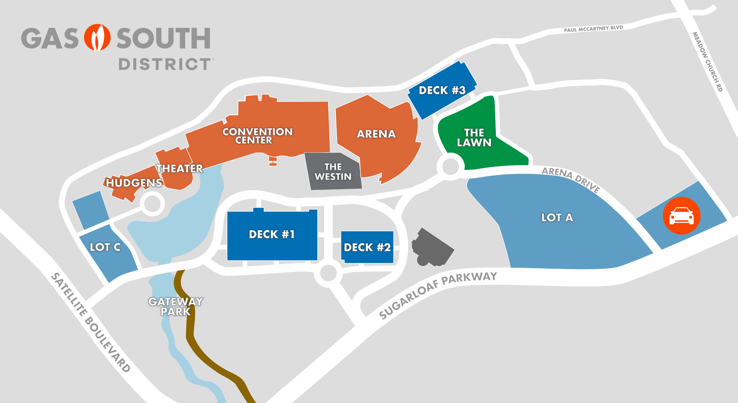 Convention Center Guests: Use Deck 1 and Deck 2.